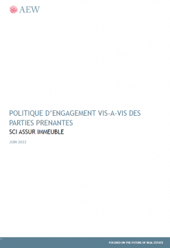 Le FIA ASSUR IMMEUBLE promeut des critères environnementaux ou sociaux et de gouvernance (ESG) mais il n'a pas pour objectif un investissement durable. Il pourra investir partiellement dans des actifs ayant un objectif durable, par exemple tels que définis par la classification de l’Union Européenne