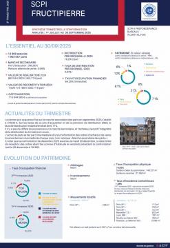 FRUCTIPIERRE est actuellement une SCPI à capital fixe fermé, c'est à dire sans création de parts nouvelles. L'achat de parts n'est donc possible que sur le marché secondaire (échanges de parts existantes), dont les modalités de fonctionnement sont exposées dans la partie "Achat/Vente".