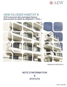 AEW CILOGER HABITAT 6 a clôturé son programme d'investissements en octobre 2021, et a signé des acquisitions de logements éligibles au dispositif fiscal « Pinel » pour un montant total de l'ordre de 40 M€. Au 12 février 2024, les 116 logements acquis sont livrés.