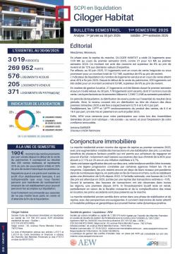 Quatorze remboursements, d'un montant total de 190 € par part, ont été mis en paiement (dont 26 € au titre de 2025). Ils représentent le résultat des 205 ventes de logements réalisées jusqu'au 30 juin 2025, et sont répartis égalitairement entre les 269 952 parts qui composent le capital de CILOGER HABITAT. Les acomptes sont nets de l'impôt sur les plus-values immobilières payé sur les ventes réalisées.