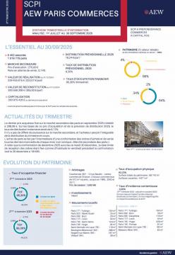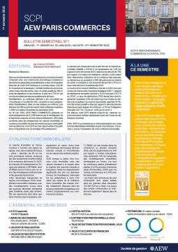 la SCPI AEW PARIS COMMERCES ne présente aucune garantie de capital ou de performances. Votre investissement est donc exposé à un risque de perte en capital, notamment en cas de cession de parts. |