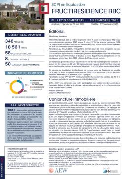 Au 3O juin 2025, FRUCTIRESIDENCE BBC a cédé 8 logements depuis le début de la vente du patrimoine (dont 2 sur l'année 2025), pour un prix de vente global de 2,1 M€.